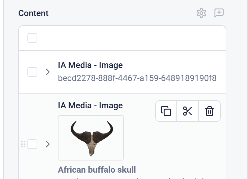 Items to be displayed in the grid are added in the Content field as Blocks.