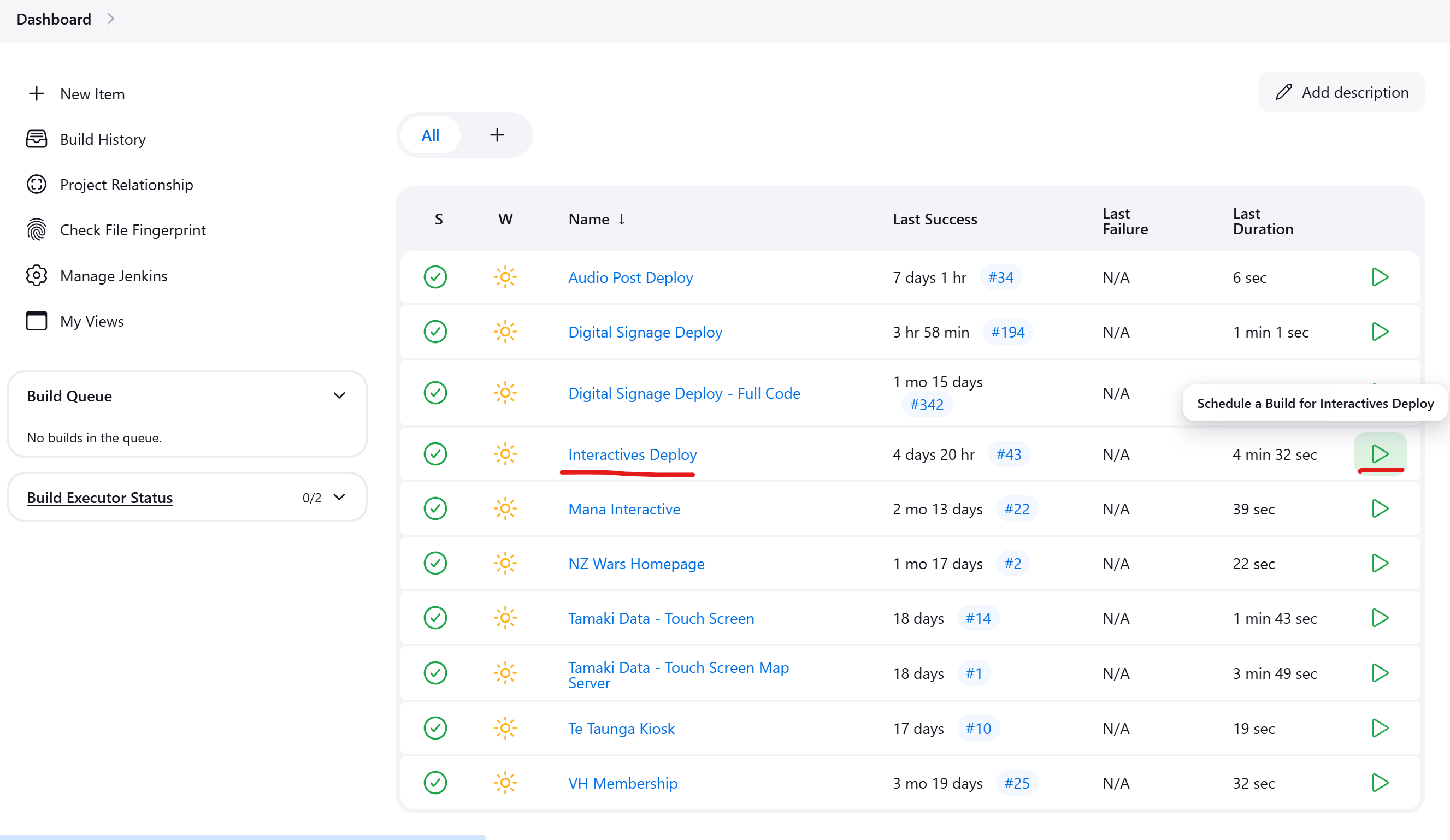 Clicking on the Interactives Deploy green arrow will build ALL Published interactive content.